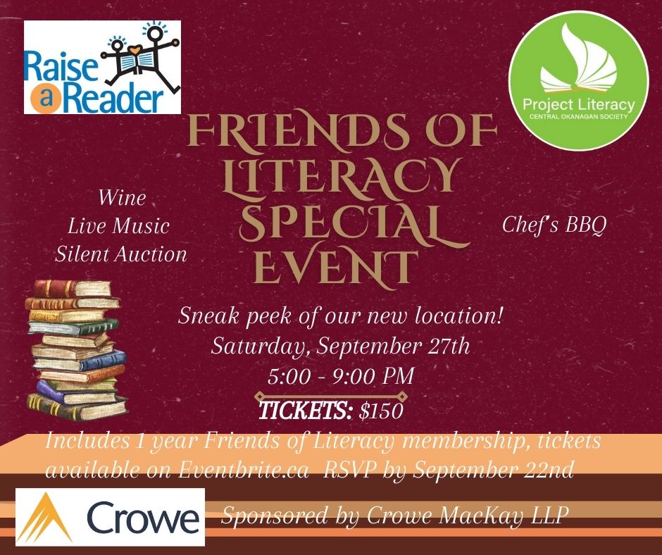 In conjunction with this campaign, we hosted a Fundraiser BBQ at our new location on Saturday, September 27th from 15pm -8:00pm. We were so pleased with our community who came to enjoy music, food, games and to support Project Literacy’s family programming, where children and adults can achieve their full potential at school, work and within the community through FREE individualized literacy instruction. This event was generously sponsored by Crowe Mackay LLP.